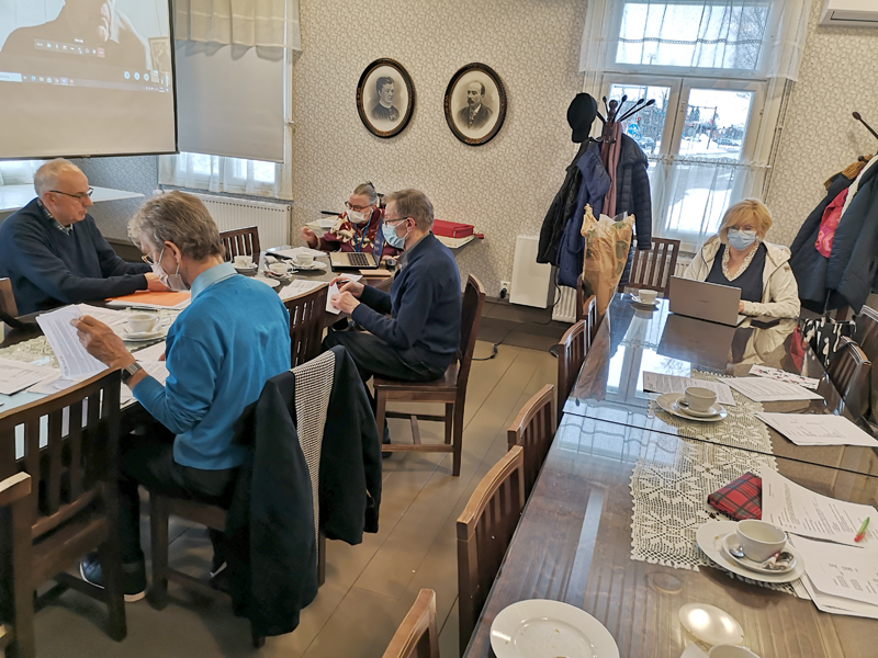 Koronapandemian ajan määräysten hieman kevennyttyä keväällä 2021 oli mahdollista kokoontua yhteiseen tilaan. Rajoitusten aikana Kauhajoki-Seurassakin on pidetty myös etäkokouksia sähköpostitse tai videoyhteyden avulla, kuten näissä kuvissa 16.3.2021.